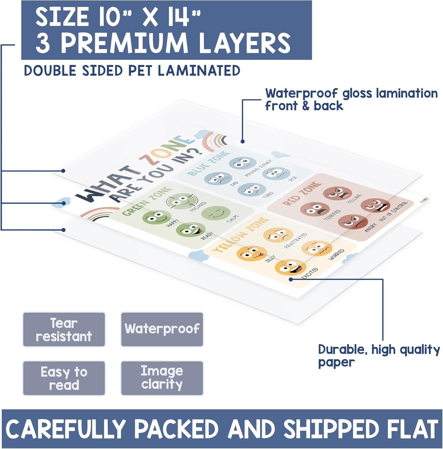 Printed on thick, laminated cardstock — resistant to tearing and easy to clean. Perfect for repeated classroom use or at-home emotional learning routines.