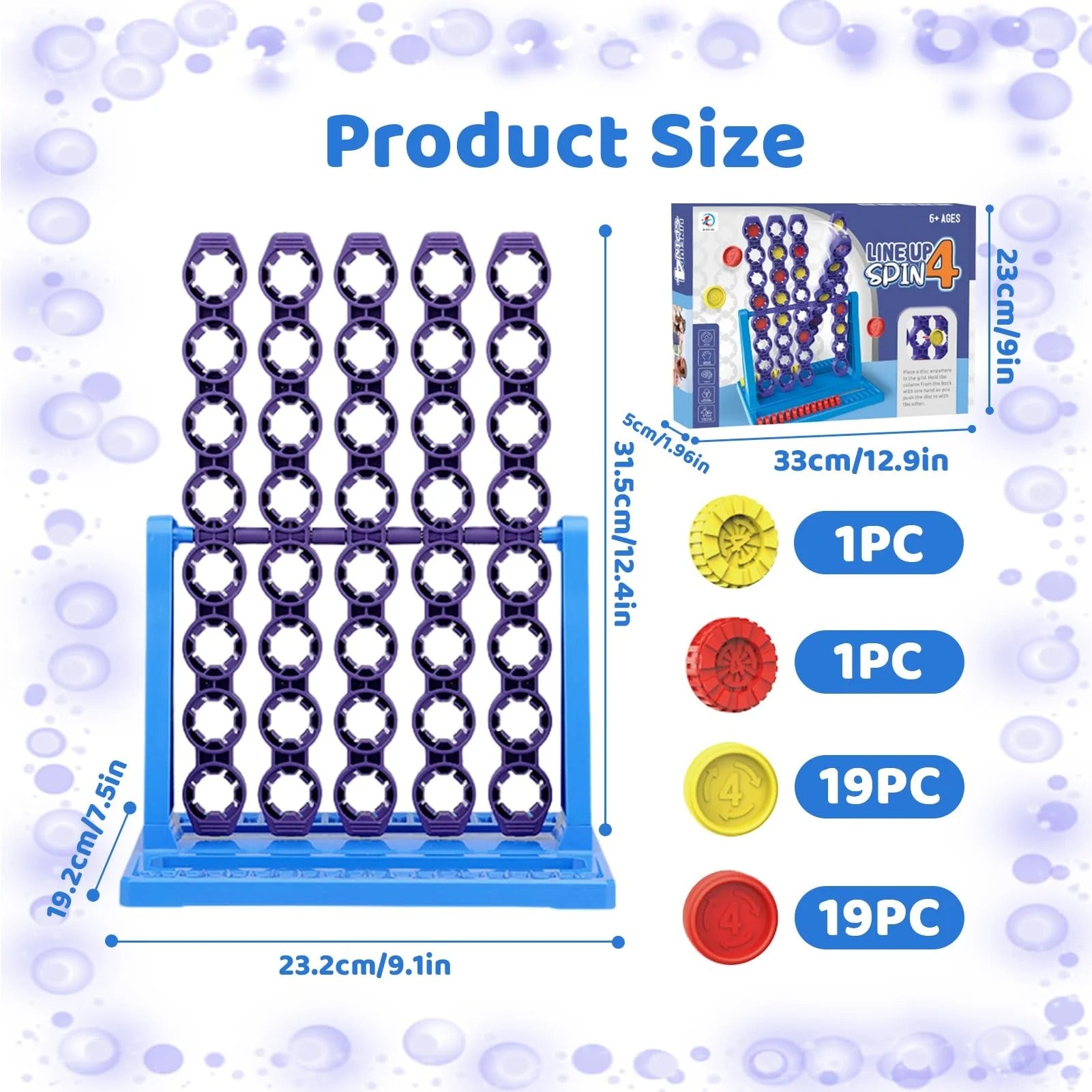Comes with 40 durable discs (19 red, 19 yellow, plus 2 weighted pieces) for endless rounds of exciting competition. this game board measures 12.4 x 9.1 x 7.5 inches — ideal for tabletops or travel play.