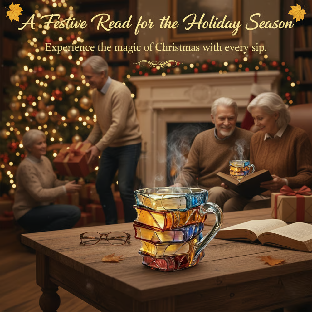 🎁A stunning, hand-painted ceramic mug designed to look like a colorful stack of vintage books. Instantly wins the title of the 'Most Unique Gift' under the Christmas tree.