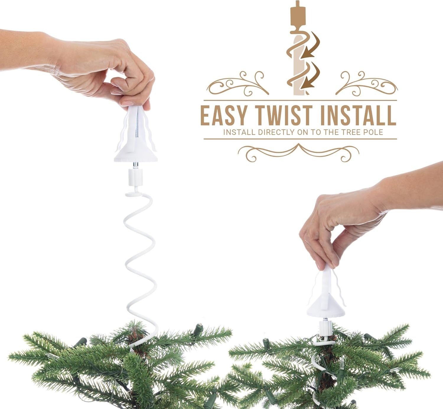 Its sleek design blends perfectly into the tree, making your topper appear naturally balanced — the finishing touch for a flawless holiday look.