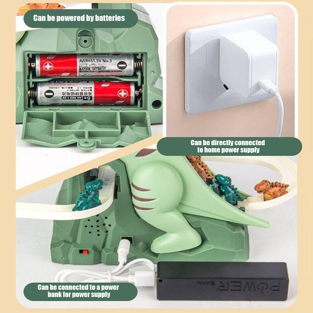 With this track toy, babies can connect multiple track blocks together to build a complete scene. It is both fun and educational, which can inspire and develop children's abilities.The dinosaur roller coaster toy is very easy to install. Your child can complete the installation by themselves and exercise their hands-on ability and cubic imagination. This product battery is already included for you.