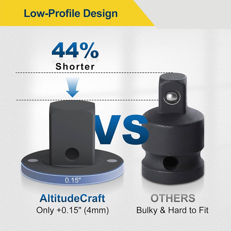 - Space-Saving Stackable Design: The stackable design minimizes storage needs, keeping your toolbox organized and clutter-free. Each impact socket adapter interlocks seamlessly, ensuring stability during transport and easy access when needed.