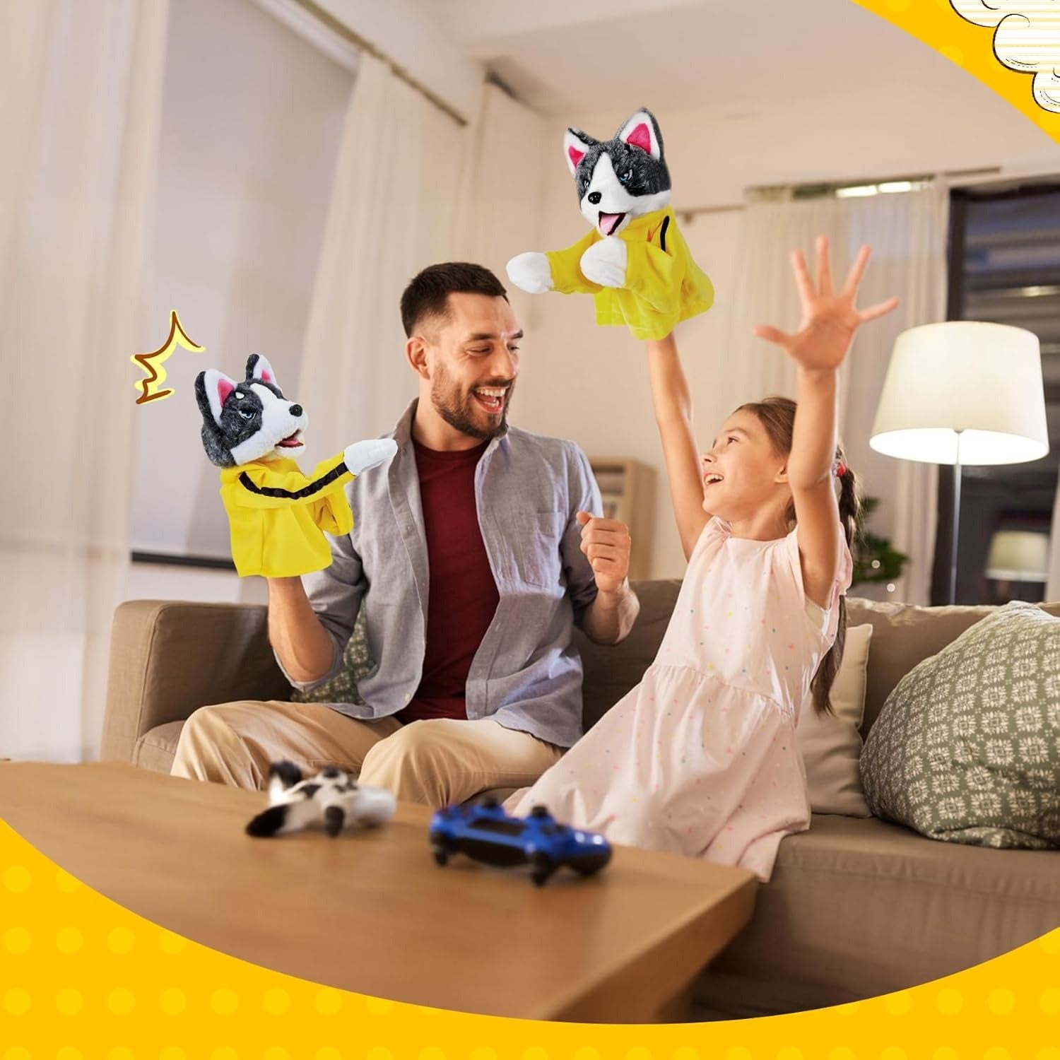 Our Husky hand puppet set features flexible hand movements and sound functions, inspiring creativity and allowing children to create unique stories and scenes. This allows children to create creative stories and scenes while having fun, improving their communication skills and creative thinking.