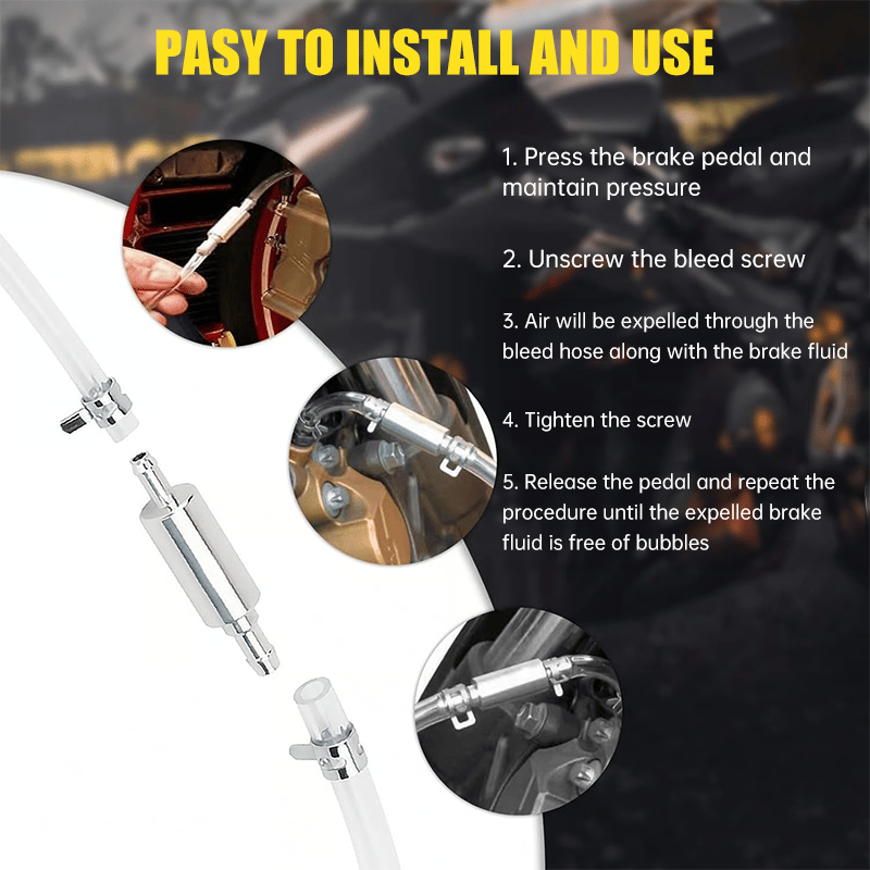 This brake bleeder hose is an essential tool for maintaining your brake system. Our kit is compatible with a wide range of vehicles including cars, motorcycles, electric scooters, and more. Take the hassle out of brake fluid bleeding whether you're a DIYer or a pro mechanic.