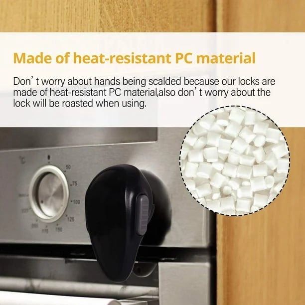 The oven lock is made of heat-resistant PC material, which means you don't have to worry about burning your hands or the lock being affected by high temperatures while in use.