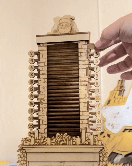 This delightful advent calendar captures the magic of Santa’s Christmas Eve journey. Each day, pull the numbered tab to move Santa one step closer to the fireplace—just like he’s climbing down the chimney to deliver gifts. When he finally reaches the bottom, it’s Christmas Day! A fun and interactive way to count down the days with your family.