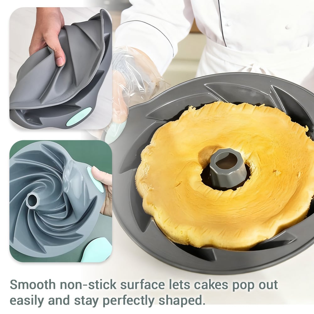 🌀Combining flexible, non-stick silicone with a metal-reinforced frame, this pan ensures every cake comes out evenly baked, beautifully shaped, and effortlessly released.