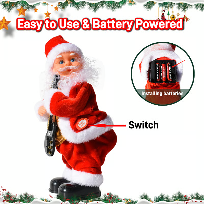Simply insert 3 AA batteries (not included), press the button, and Santa starts his performance. No messy wires or complicated setup — just pure fun and entertainment anywhere in your home.