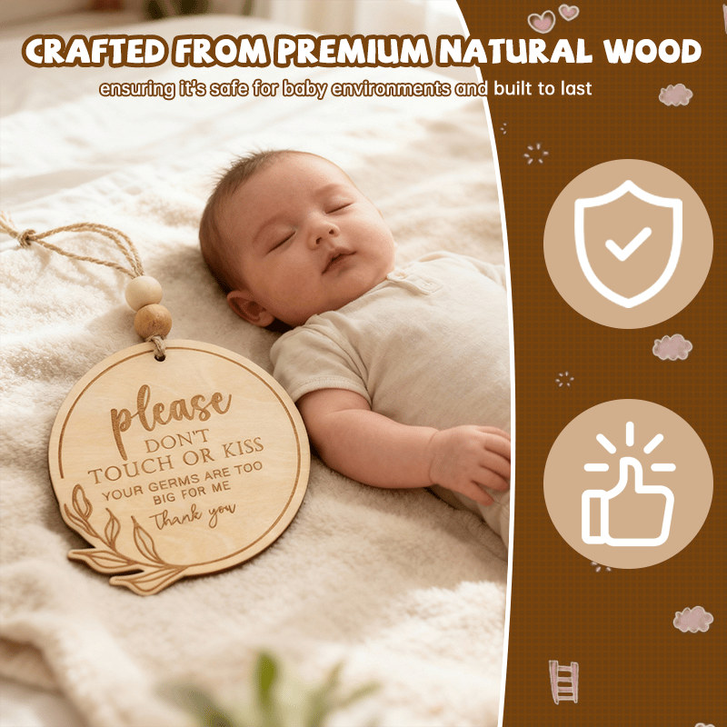 Wooden Card Please Do Not Touch or Kiss Baby Sign